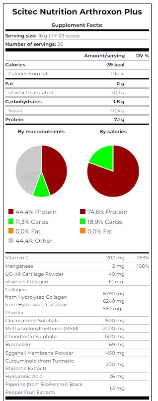 SCITEC Arthroxon Plus е висококачествена хранителна добавка, специално създадена за подпомагане здравето на ставите и ставните хрущяли. Тази формула е изключително полезна не само за атлети, които подлагат тялото си на ежедневно натоварване, но и за любители на спорта, които искат да запазят подвижността и здравето на своите стави. Съставките в Arthroxon Plus, включително колаген, витамин С и манган, работят в синергия, за да осигурят оптимално възстановяване и предотвратяване на възпалителни процеси.