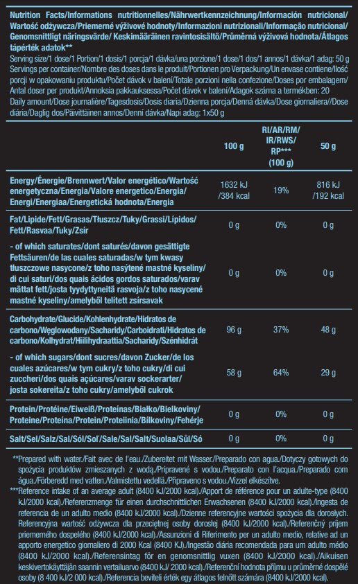 • Включва Vitargo: Бързодействаща и лесносмилаема формула, която възстановява нивата на мускулния гликоген със 70% по-бързо от стандартните въглехидратни формули.