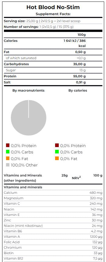 SCITEC Hot Blood No-Stim е безкофеиновата версия на популярната предтренировъчна добавка SCITEC Hardcore. Тази подобрена формула е идеална за всички, които искат да избегнат кофеина и други стимуланти, но все пак търсят мощна подкрепа за своите тренировки. Всеки саше съдържа 3 грама креатин, което е ключово за производството на енергия и синтез на АТФ в мускулните клетки.