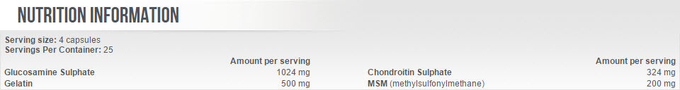• Съставки: хондроитин сулфат, глюкозамин сулфат и MSM комплекс