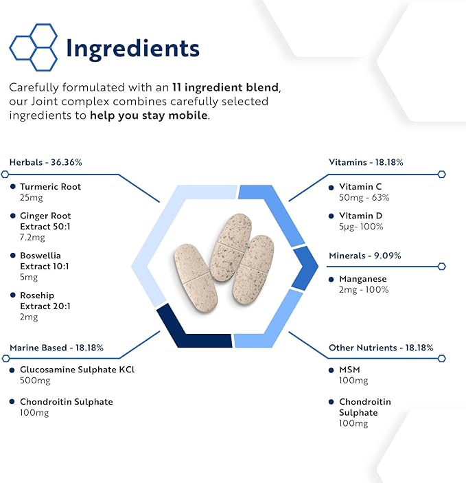 В комбинация с манган, витамин D и екстракт от джинджифил, формулата осигурява мощна подкрепа за ставите, както за жени, така и за мъже.