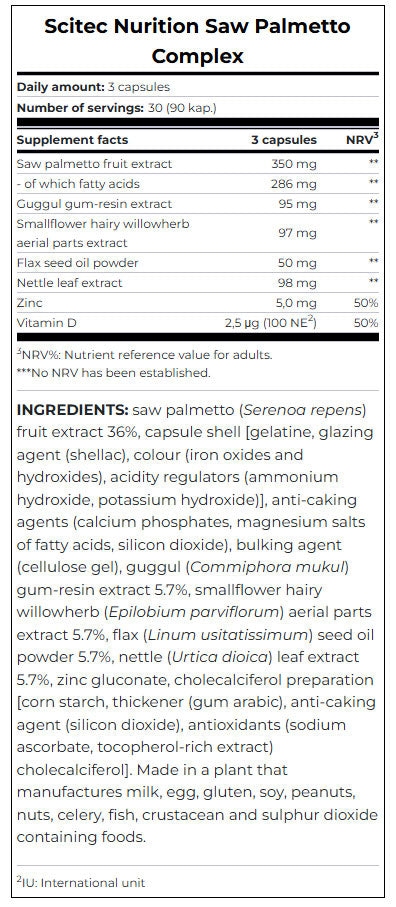 Saw Palmetto Complex от Scitec Nutrition е специално разработена формула, която подпомага здравето на простатата, хормоналния баланс и нормалната функция на мъжката репродуктивна система.
