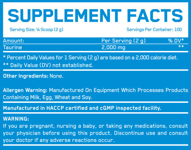 Тауринът е втората по разпространение аминокиселина в организма; той се произвежда естествено, но може да се набавя чрез хранителни добавки. Тауринът спомага за транспортирането на есенциални вещества като глюкоза и други аминокиселини до мускулните клетки, участва в регулирането на водно-електролитния баланс и поддържа нервната система.