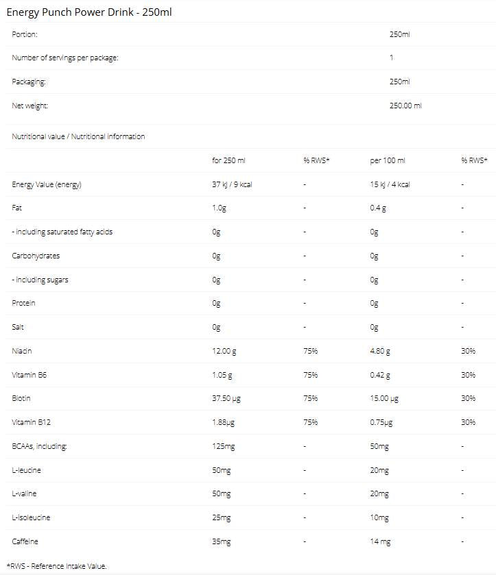 Energy Punch Power Drink | with BCAA & Caffeine - 250 мл