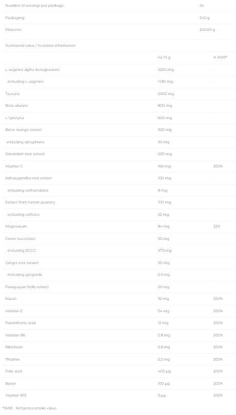 • Лесен за употреба: Просто смесете 1 порция (10 g) с 200 ml вода и пийте 30 минути преди тренировка.