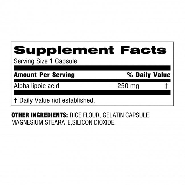 • Всяка капсула съдържа 250 мг Алфа липоева киселина