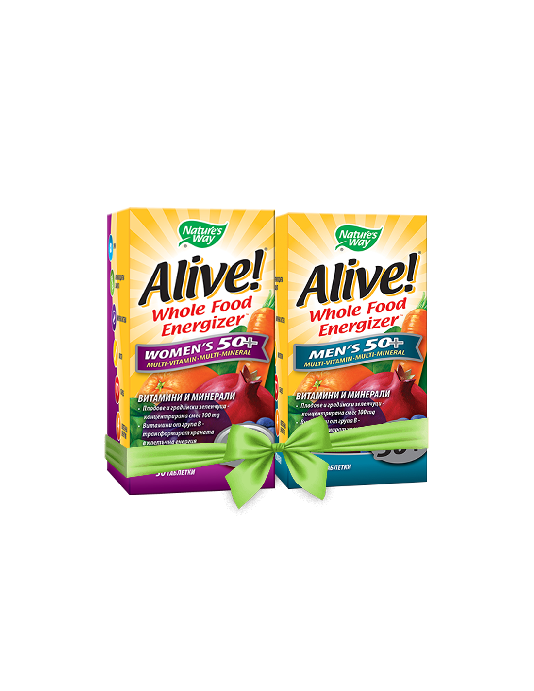 Промо пакет Мултивитамини Alive! таблетки за жени 50+ и мъже 50+