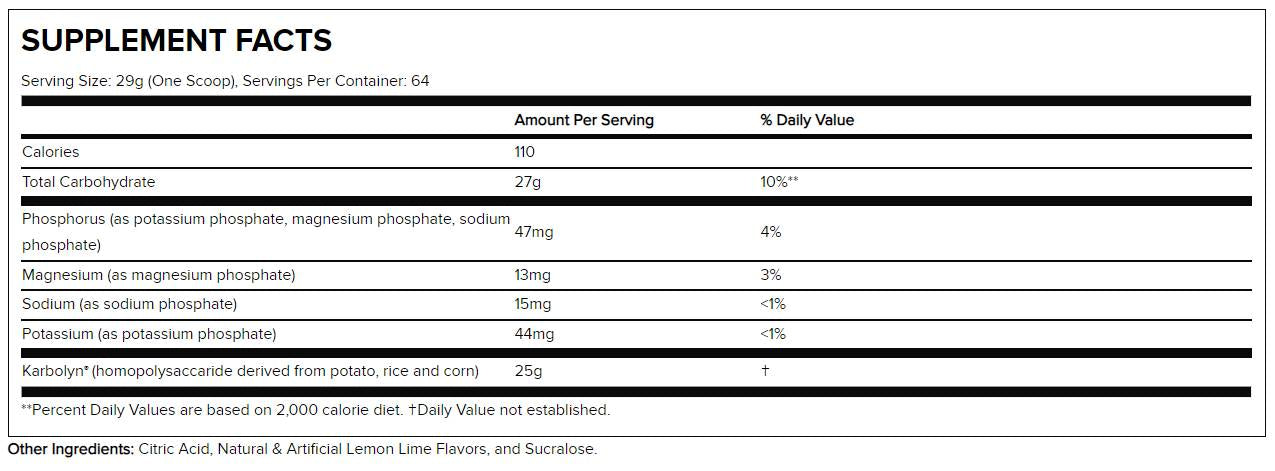Съдържащите се в Karbolyn Hydrate въглехидрати са лесно усвояеми, което означава, че бързо осигуряват нужната енергия по време на интензивни тренировки. Научни изследвания показват, че правилният прием на въглехидрати преди и след тренировка може значително да подобри физическата производителност и възстановяването. Включените електролити играят ключова роля за поддържането на хидратацията и баланса на минералите в организма, особено при продължителна физическа активност.