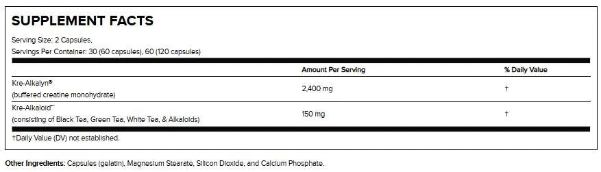 3. Kre-Alkaloid™ : Това е нова съставка, доставена от три различи и специфични видове алкалоид. Тези алкалоиди представляват бленда, която прави креатина много по силен източник на енергия. Kre-Alkalyn EFX молекулите са силно свързани и изразяват силни синергини действия между тази алкалоидна матрица за да доставят високопотентен резултат.