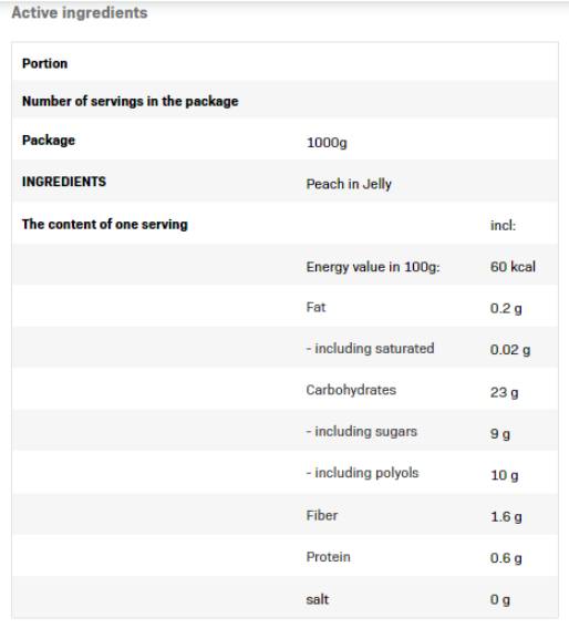 Frulove в желе с вкус на праскова е идеалното решение за тези, които търсят вкусна и полезна добавка към ежедневната си диета. Този продукт осигурява необходимата хидратация на организма, благодарение на своето съдържание на вода и естествени съставки. Освен това, той е богат на витамини и антиоксиданти, които подкрепят имунната система и помагат за защитата на клетките от оксидативен стрес.