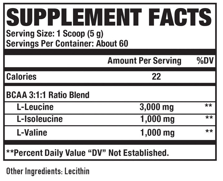 Формулата съдържа незаменими аминокиселини в съотношение 3:1:1 (левцин:изолевцин:валин), което осигурява бърз достъп до важни компоненти за мускулите по време и след тренировка. Левцинът силно стимулира протеиновия синтез, изолевцинът поддържа енергията и гликогеновия обмен, а валинът допринася за възстановяването и намаляването на умората.