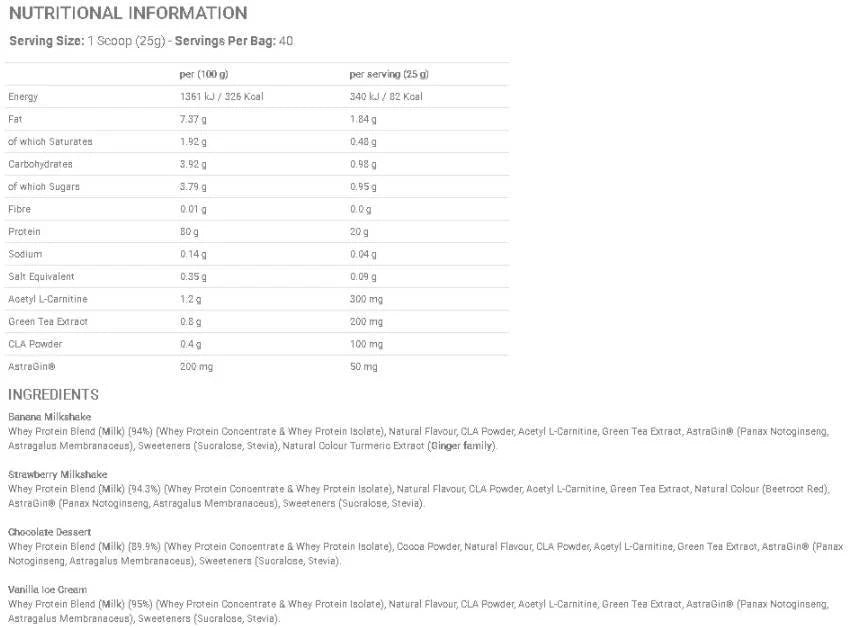 С добавянето на зеления чай, продуктът предлага мощен антиоксидантен ефект, който може да ускори метаболизма и да подпомогне изгарянето на мазнините. Суроватъчният протеин изолат и концентрат добавят необходимите аминокиселини за поддържане на мускулната маса, което е от съществено значение при отслабване.