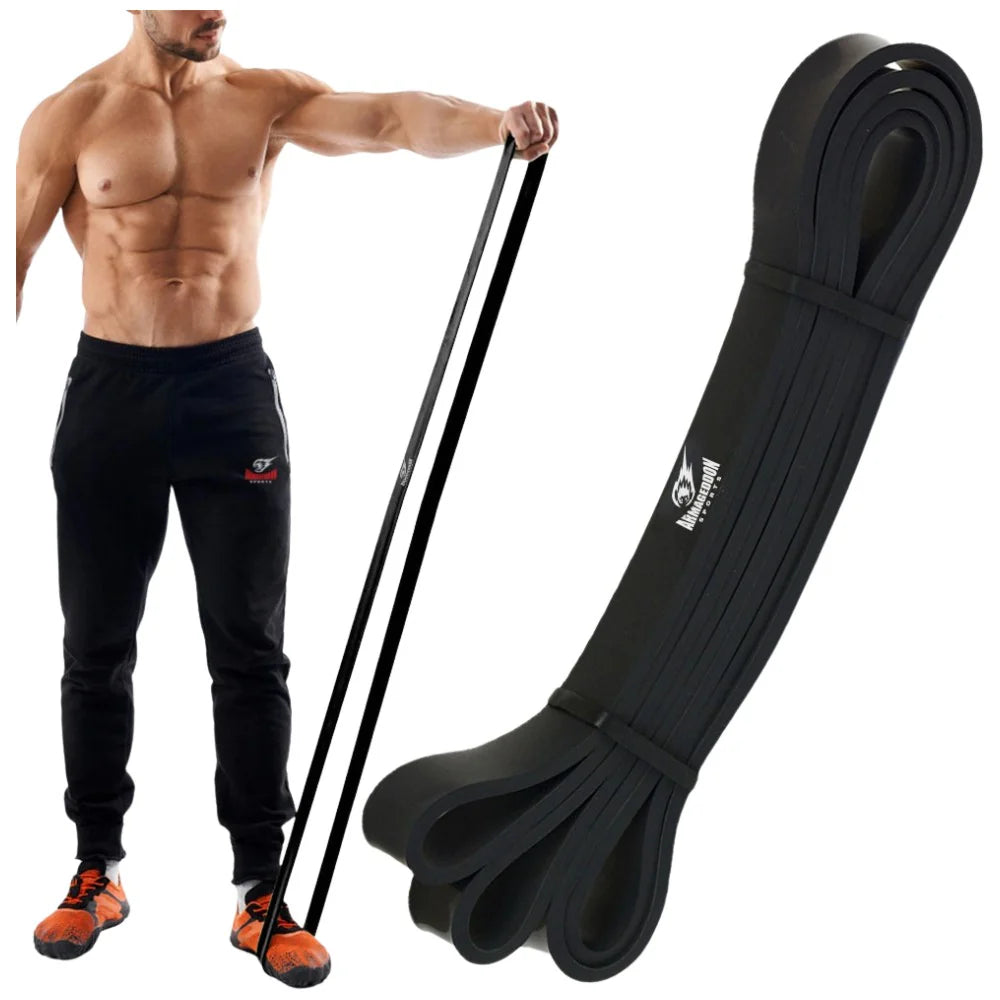 ОТЛИЧНО СЪПРОТИВЛЕНИЕ: Предлагащ постоянно съпротивление от 10 до 25 кг., черният тренировъчният ластик е перфектен за усилване съпротивлението при повдигане на лежанка, подпомагане на набиранията на лост, загряване преди упражнения, разнообразни тренировки със съпротивление, фитнес и кросфит занимания.