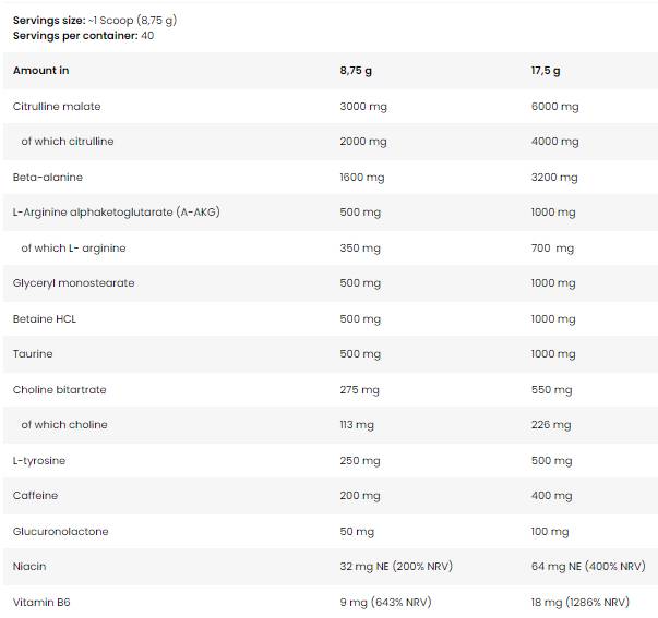 Препоръчителна употреба: Смесете ~1 мерителна лъжица прах (8,75 g) със 150-200 ml вода. Пийте 1 порция сутрин и 1 порция 30-45 минути преди тренировка.