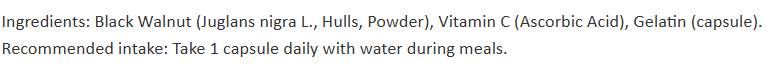 Люспи от Черен орех се използват за естествена подкрепа на храносмилателната система. Съставът съдържа активни вещества, които подпомагат нормалните функции на червата и защитните механизми на организма. Продуктът е подходящ за възрастни, търсещи натурална хранителна добавка за общо здраве и комфорт след хранене.