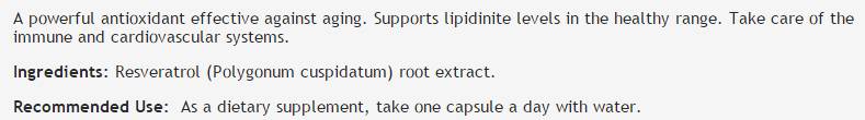 Състав: Ресвератрол (Polygonum cuspidatum) екстракт от корен.