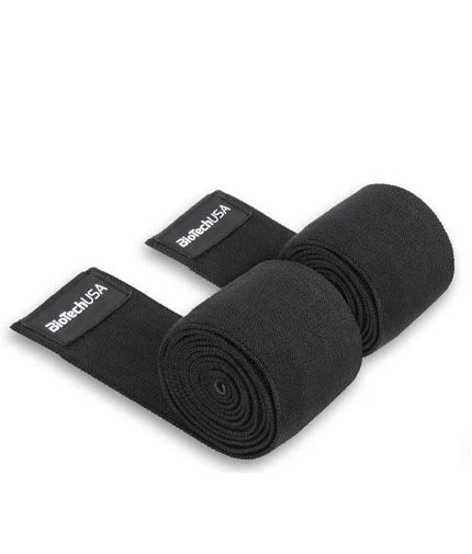 Knee Wraps 200 cm Black от Biotech USA са еластични бинтове за колене, които предоставят допълнителна подкрепа и стабилност по време на тежки тренировки.
