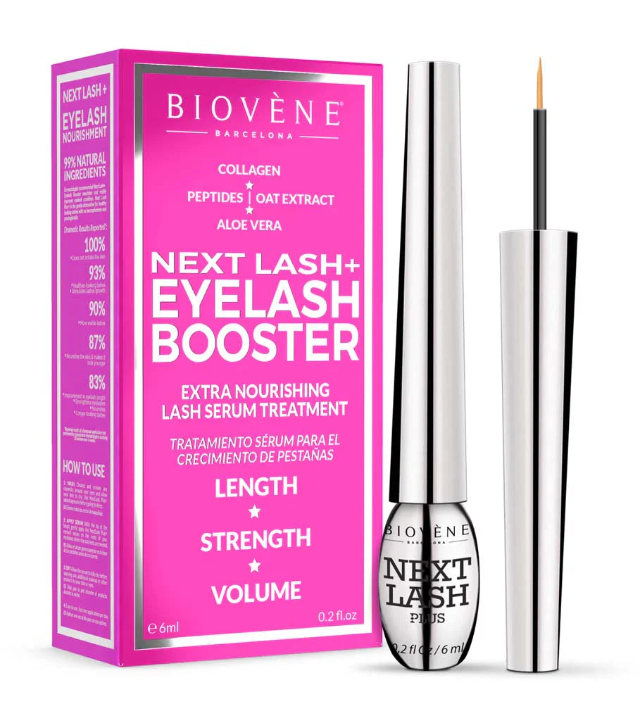Next Lash+ е клинично доказан серум за естествен растеж и подсилване на миглите с напреднали полипептиди и активни съставки като колаген, лайка, алое вера и екстракт от овес. Формулата стимулира фоликулите и подхранва миглите в дълбочина, за да изглеждат по-дълги, гъсти, здрави и блестящи – без дразнене на очите или кожата.