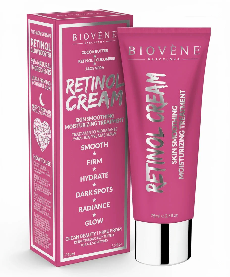RETINOL CREAM е мощен нощен възстановяващ крем, обогатен с ретинол, алое вера, екстракт от краставица и какаово масло. Формулата омекотява, хидратира и подобрява еластичността на кожата, като възвръща нейния младежки, сияен и равномерен тен.