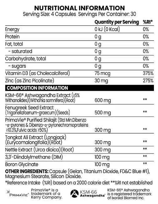 Тази формула използва синергична комбинация от натурални съставки, които работят за поддържане на нормални нива на тестостерон и подобряване на физическата издръжливост. Подходящ е за състезатели, спортисти и активни хора, които желаят по-голяма сила, по-бързо възстановяване и обща жизненост. Работи чрез насърчаване на анаболни процеси в организма и оптимизиране на енергийните нива по време на тренировка.