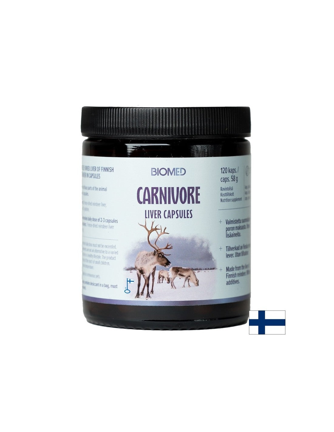 Черен дроб (лиофилизиран) от финландски северен елен, 485 mg, 120 капсули