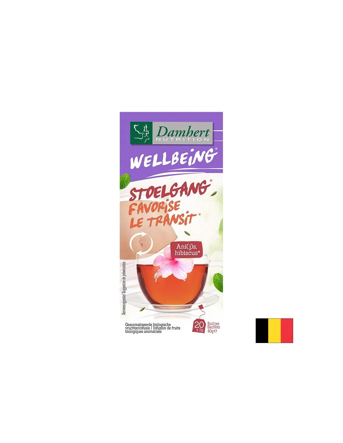 Wellbeing Favorise Le Transit / Билков чай за чревна перисталтика, 20 филтърни пакетчета е продукт, произведен от белгийската компания Damhert. Билковият чай е специално създаден за подобряване на чревната перисталтика и поддържане на стомашно-чревното здраве. Този чай е подходящ за всички, които желаят да подпомогнат храносмилателната си система и да подобрят общото си благосъстояние.
