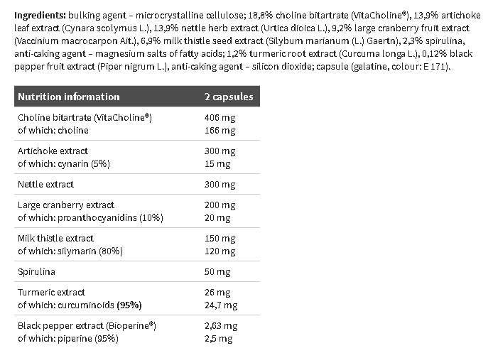 Холинът, екстракт от бял трън и екстракт от артишок помагат за правилното функциониранре на черния дроб.