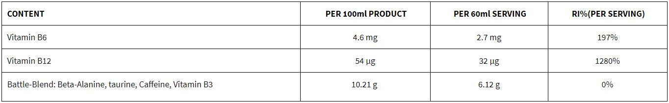 M6Teen Explosive предизвиква бърз прилив на сила и издръжливост в цялото ви тяло, като използва доминиращи дози бета-аланин и таурин. Battle-Blend повишава енергийните нива, като същевременно доставя прилив на кофеин за несравнимо умствено фокусиране.