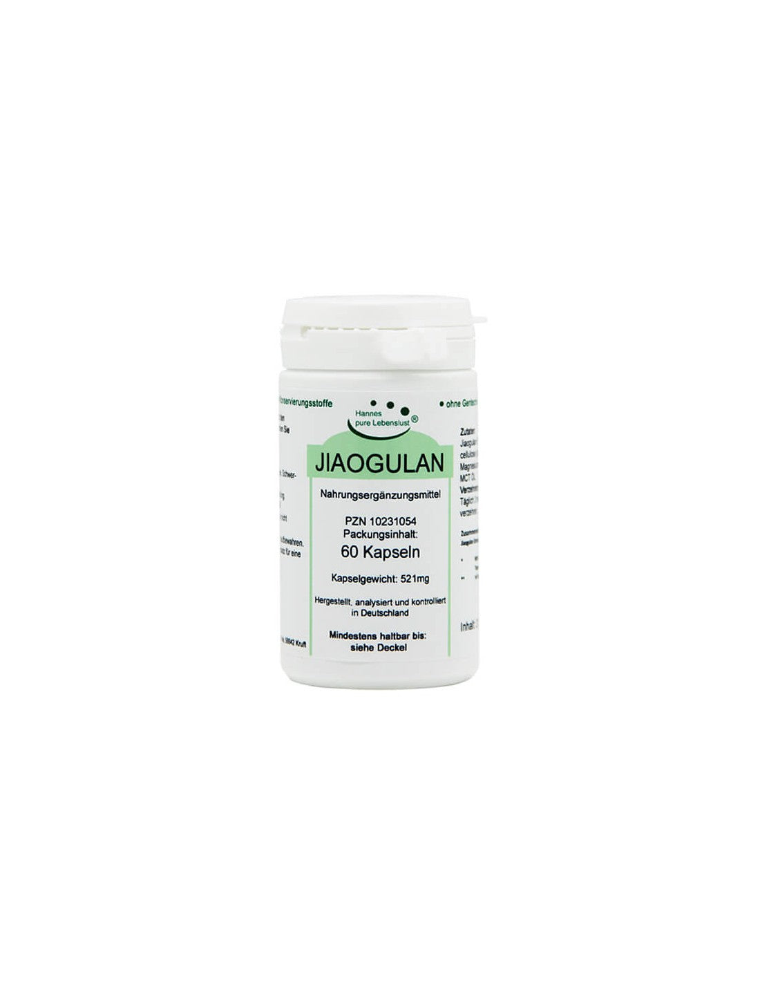 Jiaogulan / Джиаогулан (Гиностема), 60 капсули, е хранителна добавка на немската компания El Compra. Джиаогулан се използва при повишени нива на холестерол в кръвта, артериална хипертония, както и за подобряване на сърдечната функция. Хранителната добавка помага за укрепване на имунната система, повишава издръжливостта и устойчивостта към стрес от околната среда. Действа като адаптоген. Подобрява паметта и предотвратява косопада.