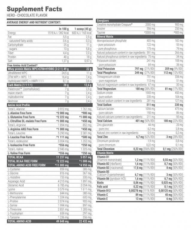 HERO ще започнете възстановяване на мускулната маса веднага след тренировката. Ще се почувствате по-добре и няма да бъдете уморени след тежката тренировката. HERO е толкова силен продукт и съдържа толкова много активни съставки, че е абсолютно уникален на пазара! Той съдържа най-широк спектър от необходими вещества след тренировка в много високи дози.