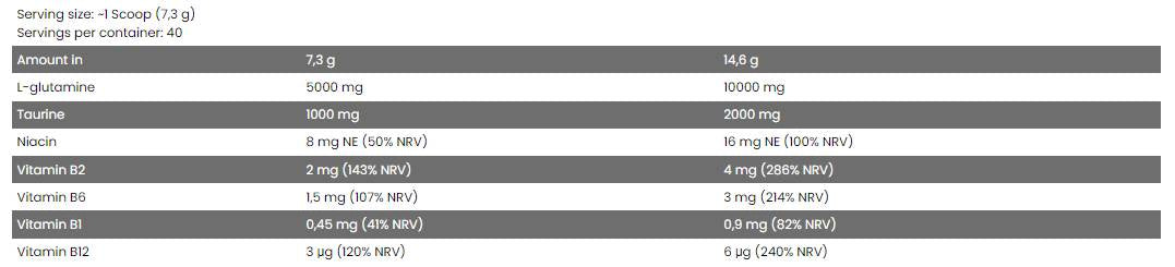 Глутаминът , е аминокиселината с най-високо съдържание в човешкото тяло и съдейства в редица функции на метаболизма. Високото съдържание на азот и глюкоза в кръвта, както и силен имунитет са само част от полезните свойства на суплементирането с Глутамин. Глутаминът, също така е и прекурсор на Глутатион, най-мощният антиоксидант в човешкото тяло, който е отговорен и за регулирането на антиоксидантните възможности на организма.