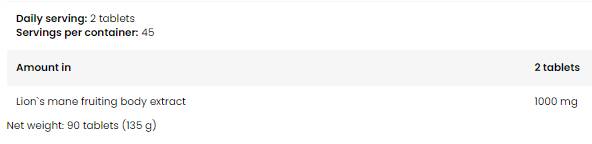 Lion's Mane Mushroom 1000 - 90 Таблетки