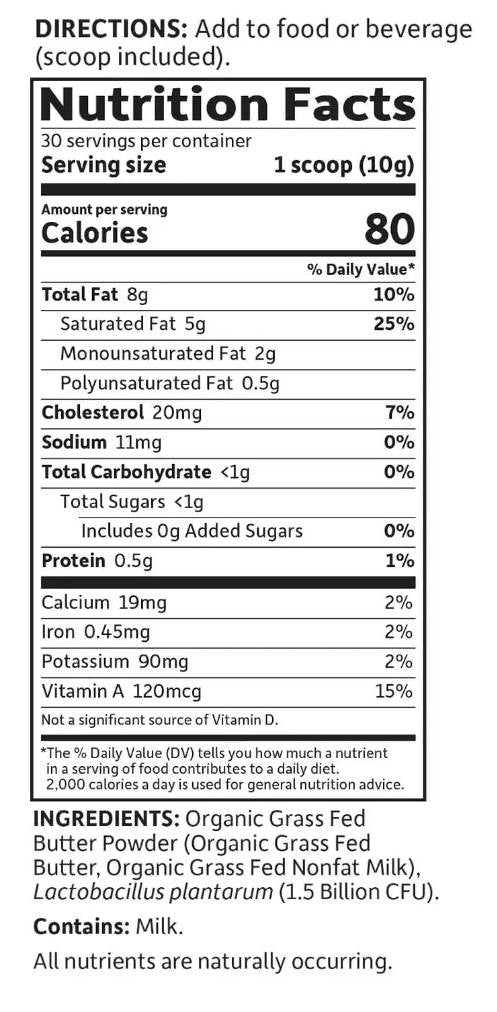 Маслото, хранено с трева, е фантастичен начин за консумация на здравословни мазнини. Keto Organic Grass Fed Butter Powder е Keto Certified, Paleo Friendly Certified и Non-GMO Project Verified.