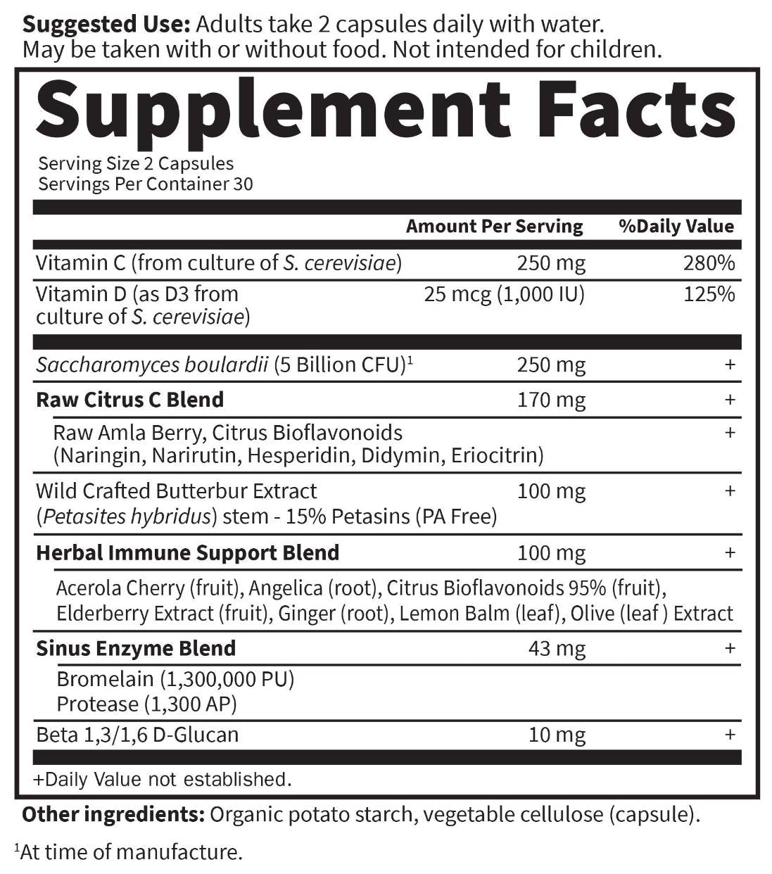 Immune Balance Sinus съчетава древната мъдрост на традиционно използваните билки с вълнуваща нововъзникваща наука, свързана с пълнозърнестите хранителни съставки като ферментиралия пробиотик Saccharomyces boulardii, ензими, цитрусови биофлавоноиди и пълноценни хранителни витамини и минерали Vitamin Code®.
