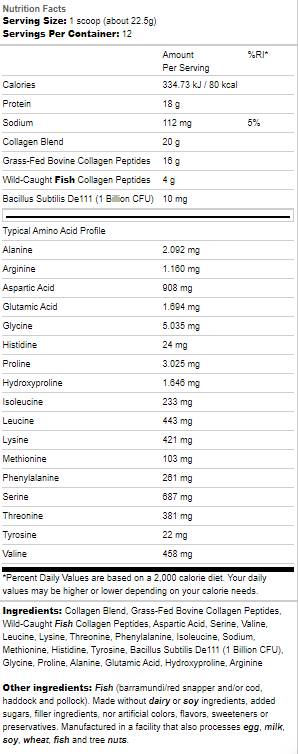 Този колаген на прах от различни източници също осигурява 1 милиард CFU живи бактерии на порция.