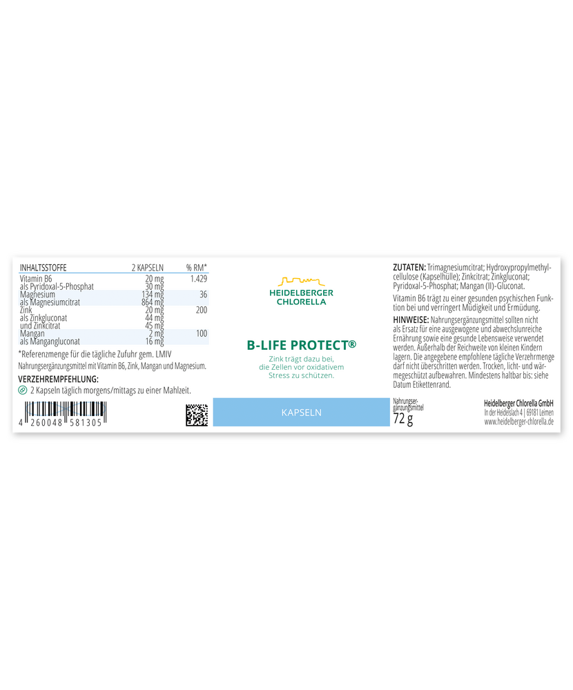 B-Life Protect е хранителна добавка, която съчетава мощни съставки като витамин B6, цинк, манган и магнезий, за да поддържа здравето ви на високо ниво. Тази уникална формула е проектирана да подпомага нормалната функция на нервната система и мозъчните процеси.