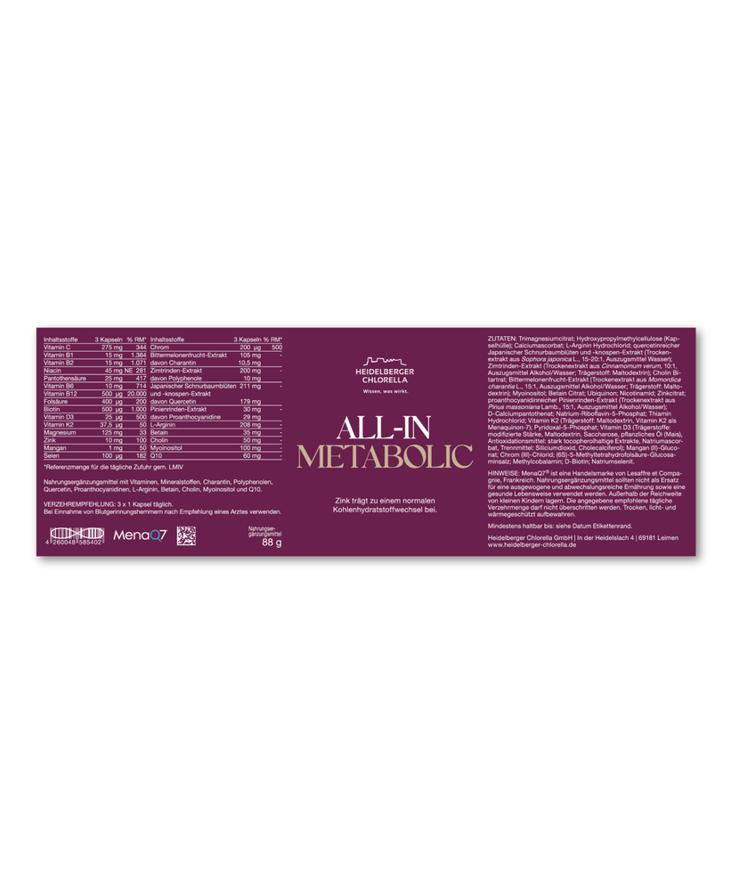 Открийте силата на МЕТАБОЛИЗЪМ - ALL–IN METABOLIC! Тази уникална хранителна добавка е проектирана, за да подпомогне вашия метаболизъм и да подобри обмяната на веществата. Всяка капсула е заредена с мощна комбинация от витамини, минерали и активни съставки, които работят в синергия, за да ви помогнат да постигнете желаните резултати.