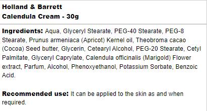 Holland & Barrett Calendula Cream е нежен, немазен крем с формула без парабени и подходящ за вегани. Може да се прилага върху кожата, както и когато е необходимо. Кремът с невен успокоява, хидратира и защитава всяка кожа, нуждаеща се от TLC и съдържа терапевтични етерични масла. 100% натурален, успокояващ емолиент за възрастни и деца над 3 години, предназначен за чувствителна кожа.