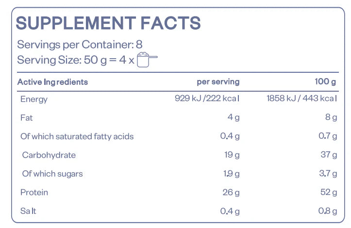 • Една доза (50 g) се смесва с 100 ml вода или нискомаслено мляко.