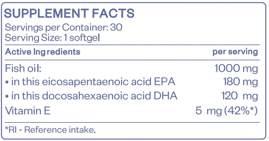 Omega 3 мастни киселини EPA и DHA са известни със своя принос към нормалното функциониране на сърцето и кръвоносните съдове, както и с подпомагането на нормализирането на холестерола. Витамин Е (D-алфа токоферол) в добавка защитава клетките от оксидативен стрес, като инхибира образуването на свободни радикали и ROS. Тази формула е разработена за по-добра абсорбция и общо благосъстояние, подпомагащо имунната функция и здравето на кожата и ставите.