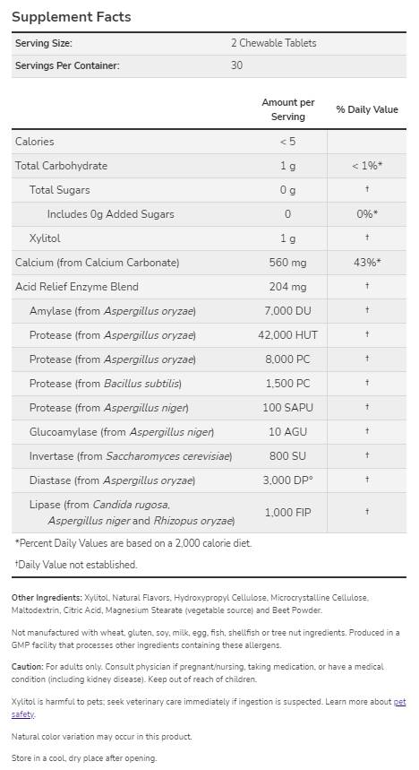 Acid Relief with Enzymes - 60 Дъвчащи таблетки