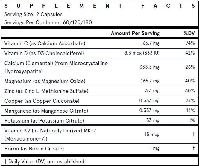 Калиев цитрат е системен алкализатор, който се добавя за оптимална остео подкрепа. Бор е микроелемент важен за калциевият и костният метаболизъм. Доказано е, че борът намалява отделянето на калций, магнезий и фосфор.