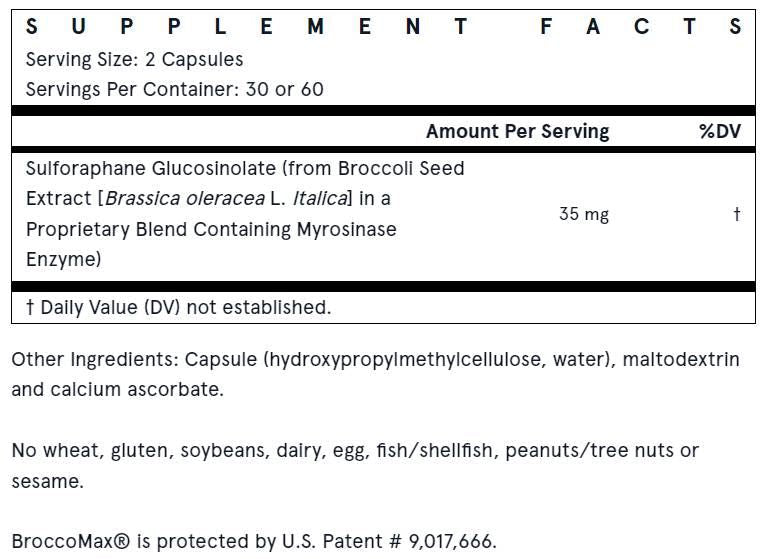 BroccoMax ® съдържа стандартизирано количество SGS, Сулфорафан глюкозинолат (известен още като Глюкорафанин), и използва патентован процес, който запазва мирозиназа, ензимът открит в броколите, който метаболизира SGS в тънките черва на органосулфурна изотиоцианатна съставка Сулфорафан.