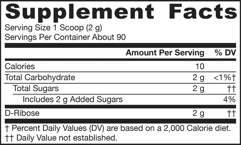 Рибозата е един от необходимите градивни елементи за образуването на АТФ, „универсалната“ енергийна молекула в тялото. Физическият стрес може да изчерпи запасите от АТФ в сърдечните и скелетните мускули. Като ограничаващ скоростта субстрат в синтеза на нуклеотиди, включително АТФ, рибозата играе жизненоважна роля в попълването на АТФ, като по този начин насърчава енергията и възстановяването на мускулите.