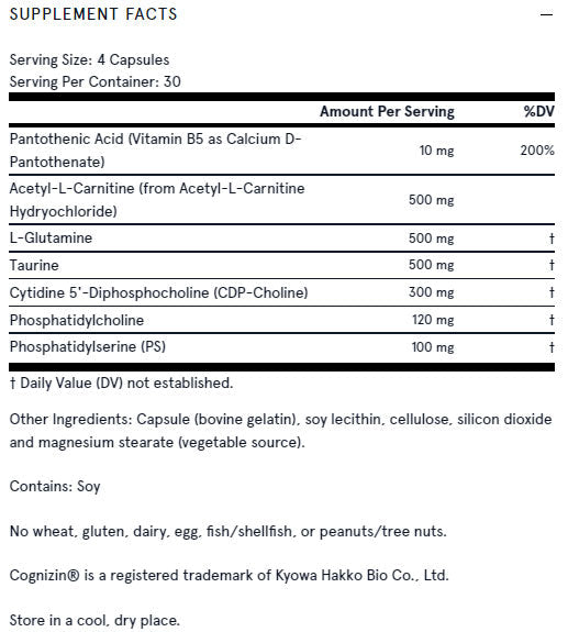 Цитиколинът подпомага синтеза на ацетилхолин и мозъчен метаболизъм; PS и фосфатидилхолин подпомагат адаптацията на мозъка към стреса; ацетил-L-карнитинът и тауринът осигуряват антиоксидантна защита и здравето на невроните; L-глутаминът също подкрепя мозъчния метаболизъм, докато тауринът помага за клетъчната осморегулация. Такъв набор от съставки подпомага възстановяването на нервната система и поддържа енергията през деня.