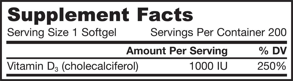 100 IU витамин D е равно на 2,5 микрограма холекалциферол. Всяка гел-капсула съдържа 25 мкг холекалциферол.