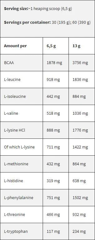 Разтворете 6.5 грама (1 лъжичка) в 250 мл. вода и приемайте преди и след тренировка.