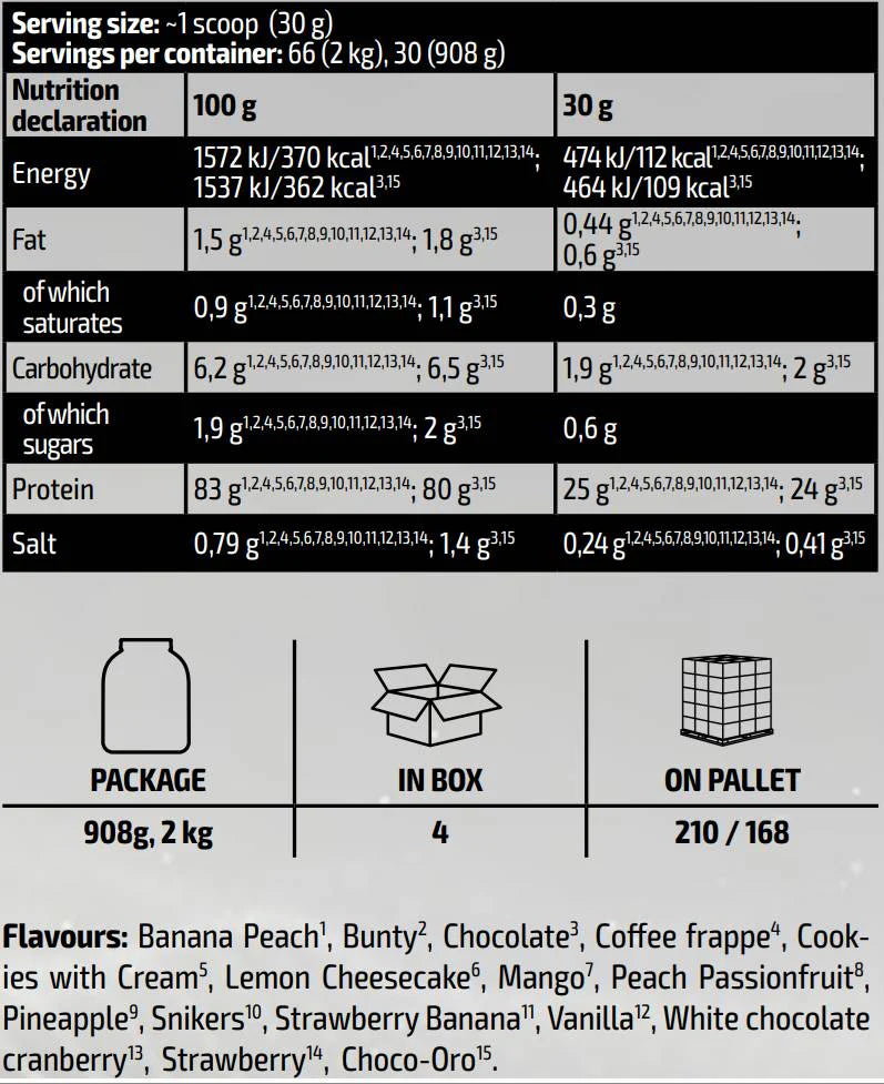 В 1 доза от 30 g получавате 25 g протеин, 6.7 g BCAA и 5 g Глутамин. Продуктът е без лактоза и без соя, подходящ за професионални спортисти, фитнес ентусиасти и лица, водещи здравословен начин на живот. Разтворим е лесно и осигурява богата аминокиселинна композиция за подпомагане на възстановяването и изграждането на чиста мускулна маса.