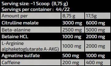 Аргинин алфа-кетоглутарат е аминокиселина, която стимулира производството на азотен оксид в организма и оптимизира преноса на хранителни вещества в организма, защото разширява кръвоносните съдове. Подобрява мускулното напомпване и осигурява експлозивна сила.