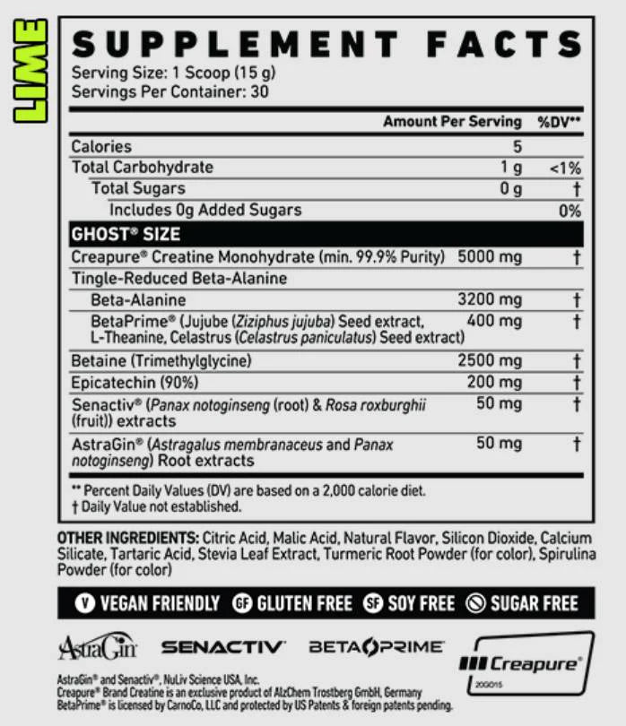 Ghost Size V2 съдържа пакетирана формула, направена само от най-чистите и висококачествени съставки. Съдържа 5 грама Creapure, патентован креатин, 2,5 грама бетаин и 3,2 грама бета-аланин. Това в комбинация с останалите съставки го прави чудесен продукт, ако искате да качите мускулна маса. Както казва Ghost, с Size V2 ще бъдете по-големи по-бързо, отколкото с photoshop.